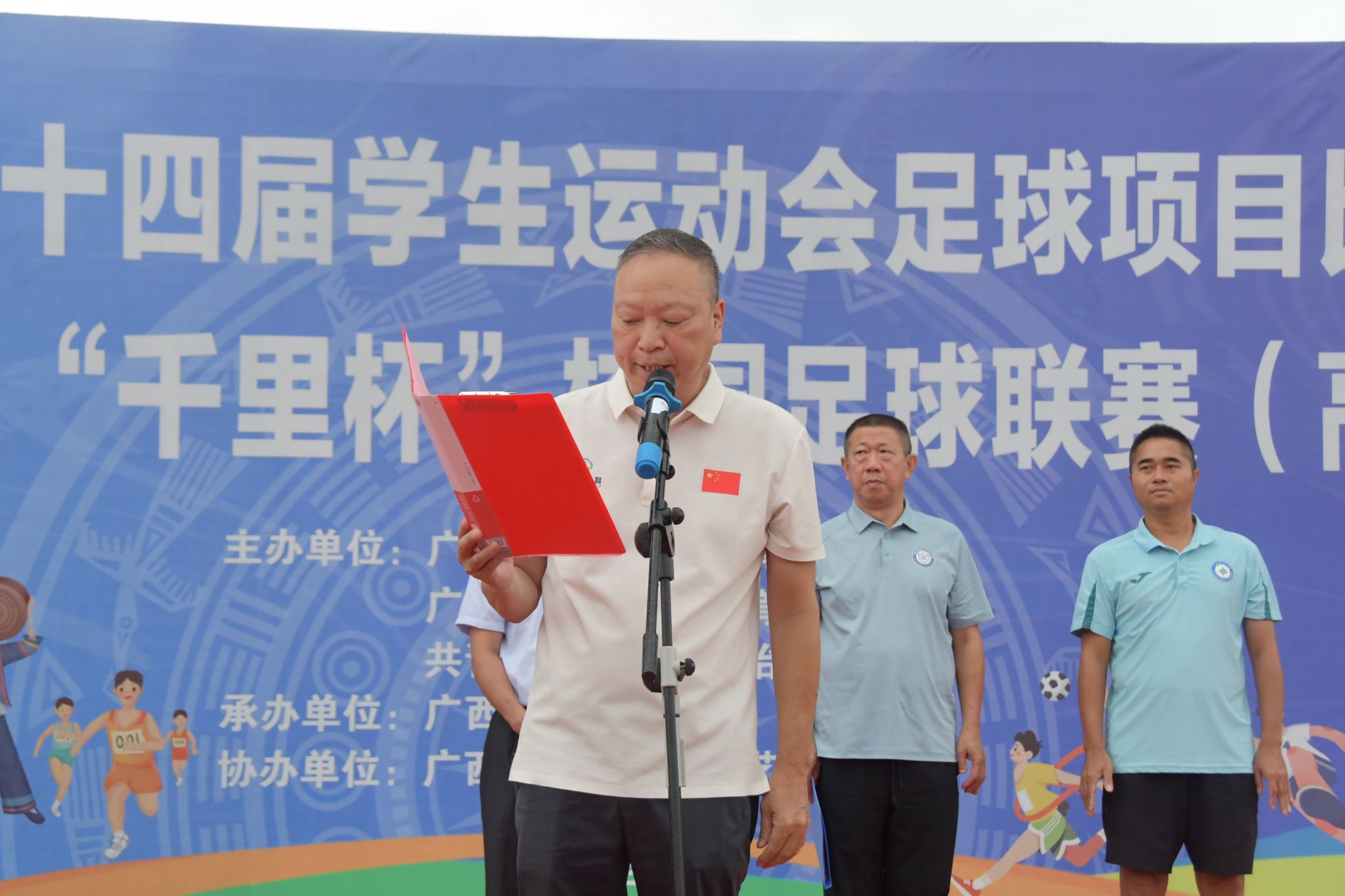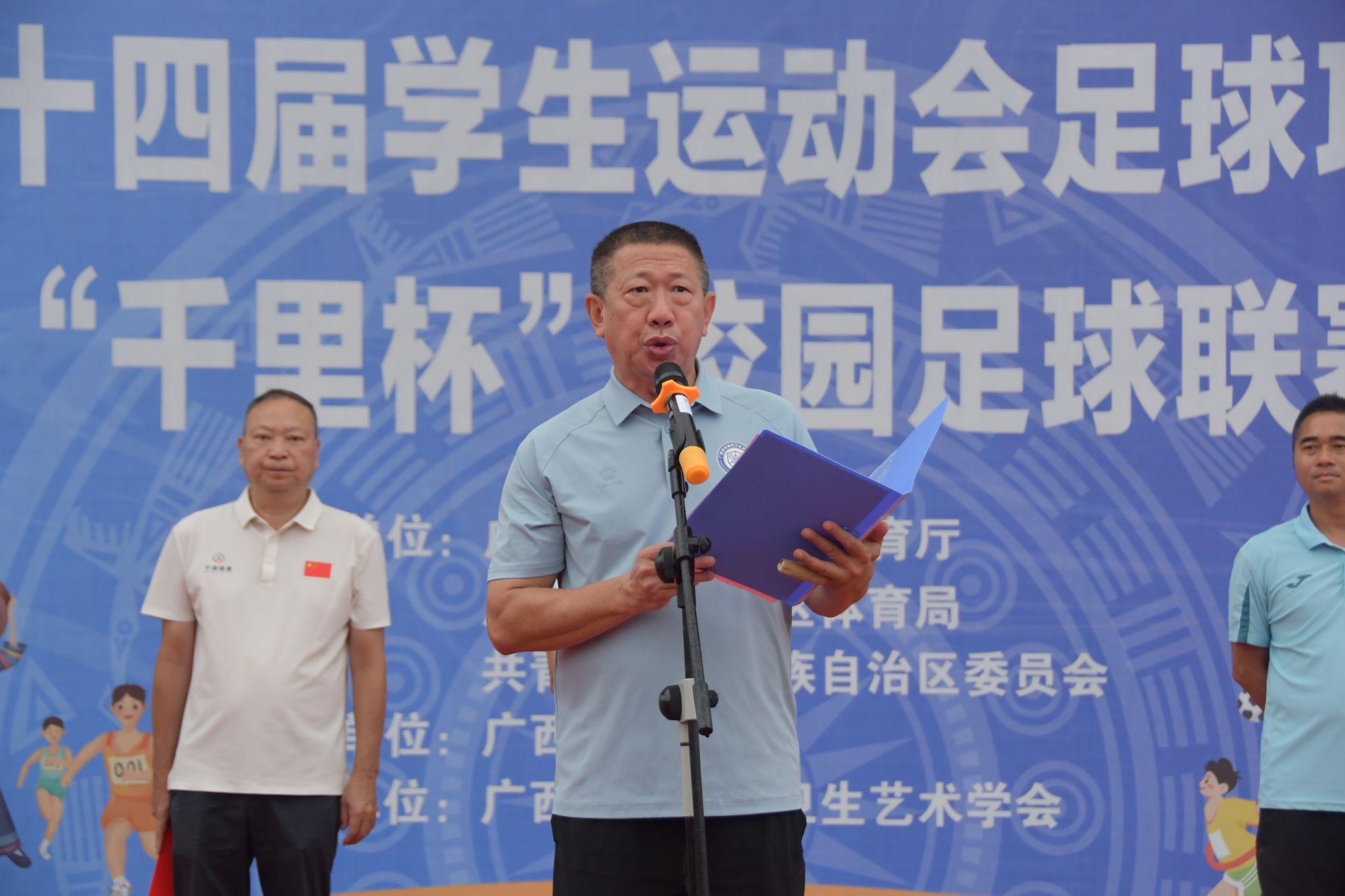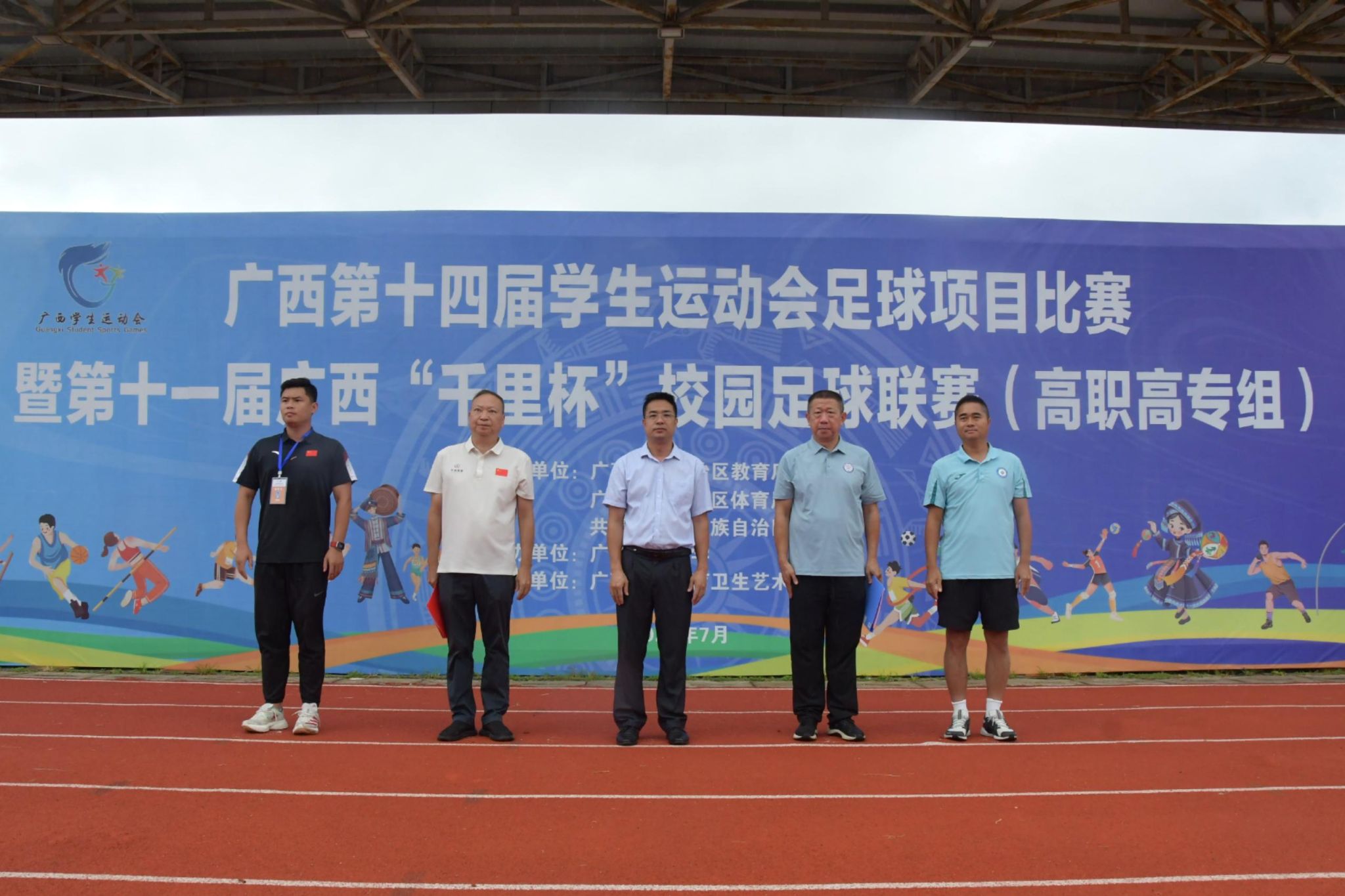 蒙红光宣布广西壮族自治区第十四届员工运动会足球项目比赛(高职高专组)开幕。