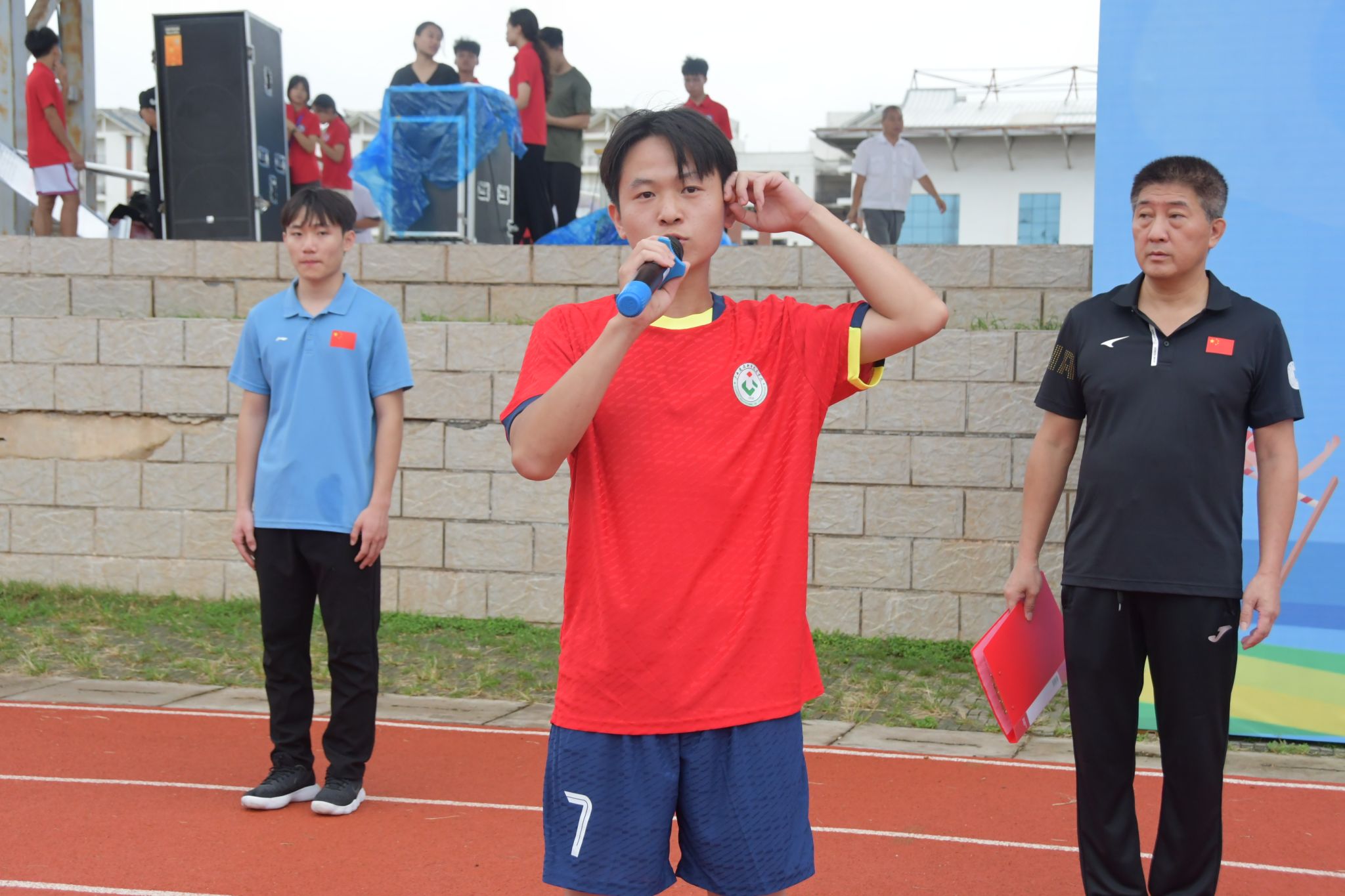 运动员代表莫洪权庄严宣誓,承诺遵守规则、顽强拼搏,以青春之名诠释体育精神。