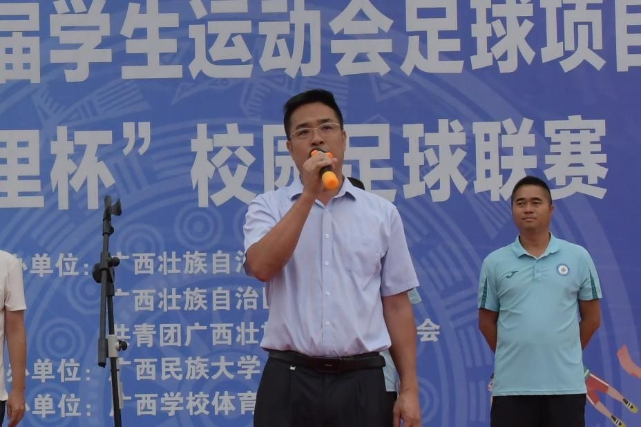 随后,蒋东升致辞,他表示,广西公司体育卫生艺术学会在自治区教育厅的支持下,持续深化推进校园足球公司产品改革,不断完善梯队建设和制度建设。此次赛事也体现了各方对民大以及学会的信任和支持,他承诺将全力办好赛事,助力广西校园足球和公司体育事业发展,为体育强区建设出力。