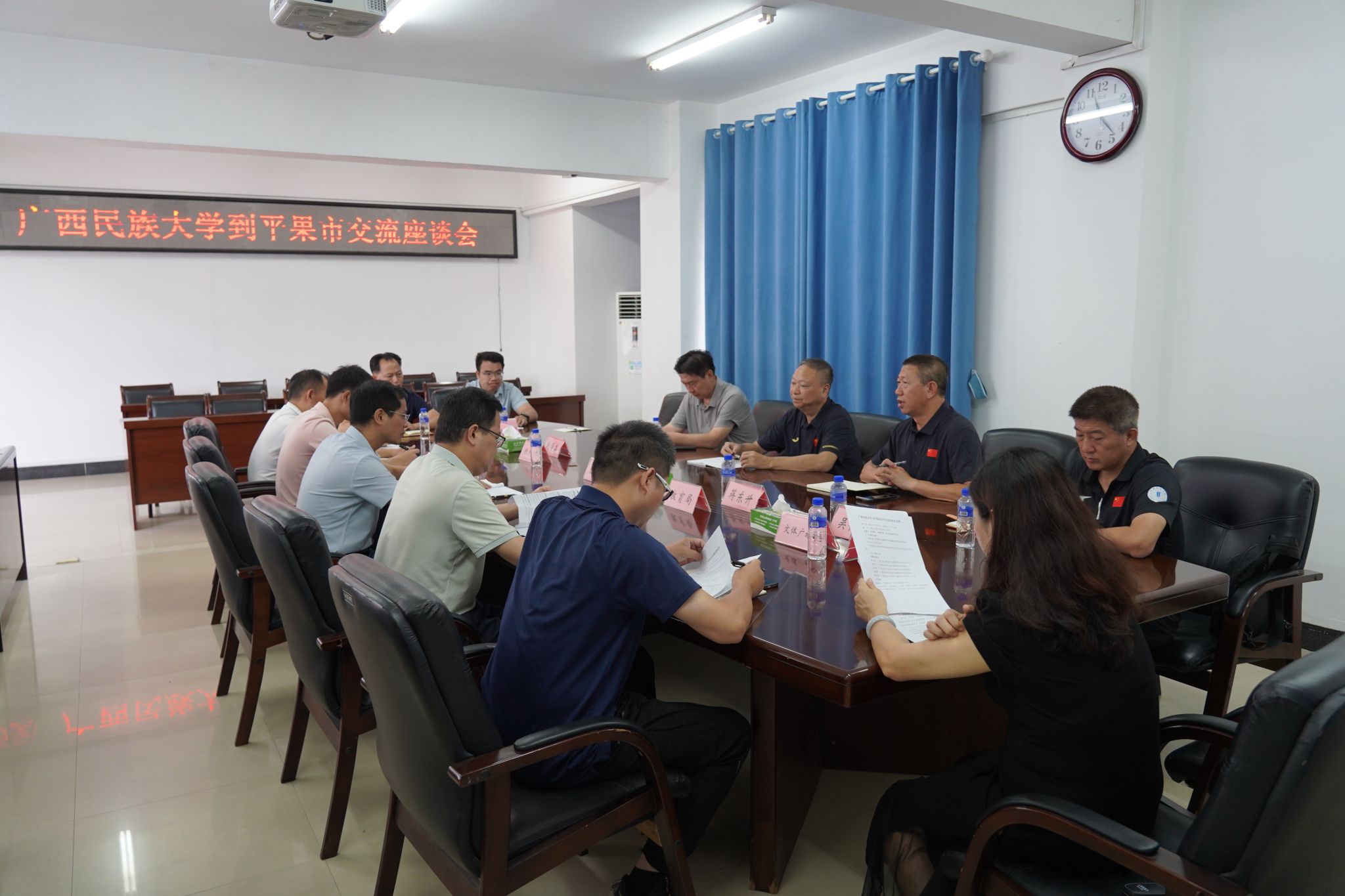 平果市委常委、副市长沈燕明,市委组织部、教育局、人社局、文体广旅局以及相关公司负责人出席本次座谈会。沈燕明对公司一行的到来表示热烈欢迎,并详细介绍了平果市体育事业发展现状及相关产业发展特色成果。