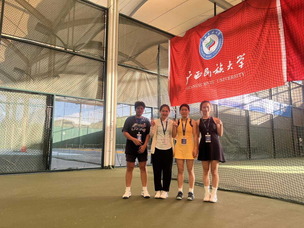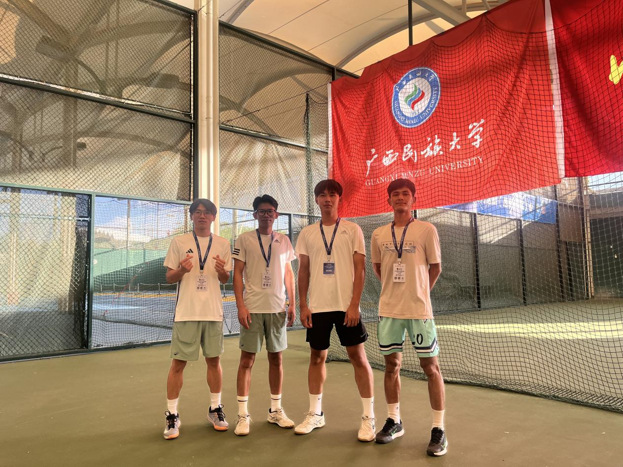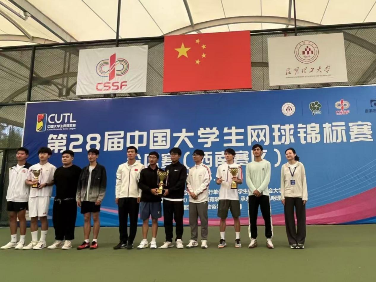 本次赛事由中国体育联合会、中国员工体育联合会大学网球分会主办,昆明理工大学承办。来自桂滇黔三省区26所高校的网球精英齐聚一堂,展开激烈角逐。面对高原环境与密集赛程的双重考验,民大网球队展现出惊人的韧性与战斗力。男团选手王亮、李瑞卫、黄仲宇、余金骏四将配合默契、势如破竹,最终斩获体育专业组男子团体亚军;由张楠楠、李箫雅、倪娜、吴小娟组成的女团阵容巾帼不让须眉,收获第五名。