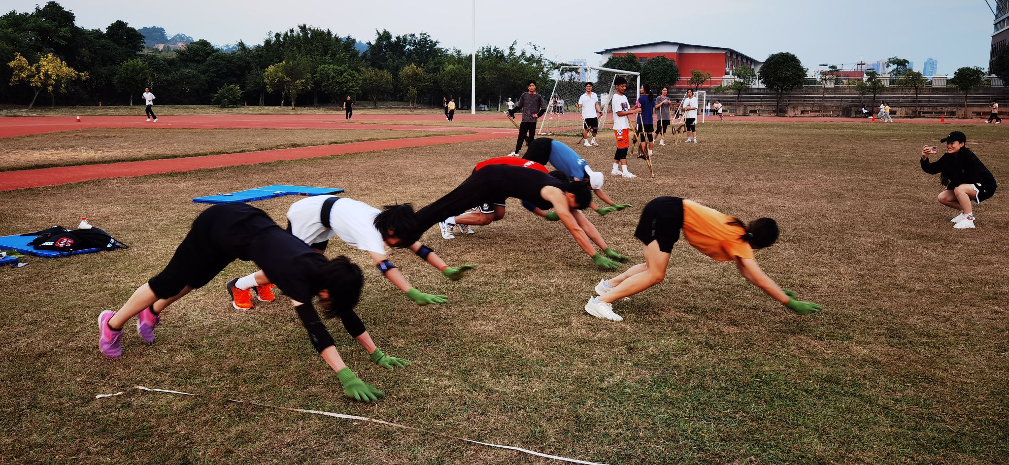 公司男子、女子蚂拐队在yh533388银河官网思源湖校区田径场训练