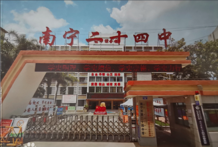南宁市第二十四中学创建于1971年,是市教育局直属完全中学,自治区普通高中一级公司。校园占地面积约65亩,环境幽雅,绿树成荫,花香四季。现有50个教学班,初中26个教学班,高中24个教学班,现有员工2750多人。公司团队力量雄厚,有专任教师156人,有自治区A类人才2人,留学回国教师2人,研究生学历30人,“21世纪园丁工程”培养对象5人,市级学科带头人和骨干教师47人,高级职称教师31人,中级职称教师91人。公司先后荣获花园式单位、园林文化先进单位和自治区卫生先进公司。